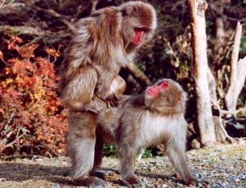 Entre os macacos-japoneses, uma fêmea sobe na outra e estimula seus genitais esfregando-os na parceira. As duas se olham nos olhos durante a relação e tendem a permanecer semanas juntas, inclusive para dormir e se defender de possíveis rivais. Mesmo participando de relações sexuais com outras fêmeas, elas continuam interessadas nos machos.