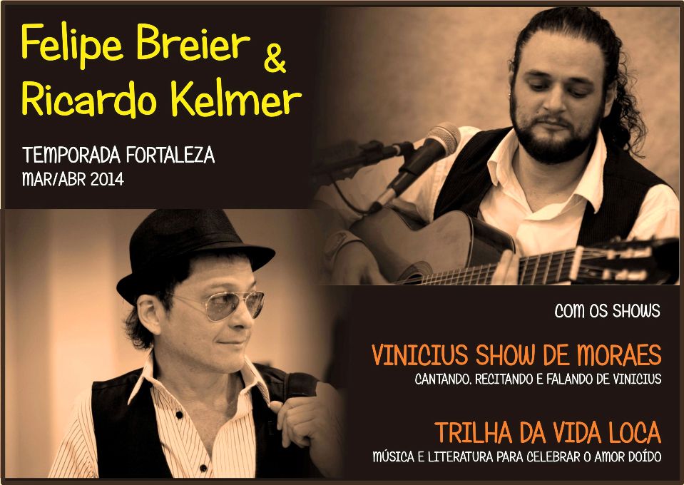 Apresentarei a palestra-show Viniciarte – Vida, música e poesia de Vinicius de Moraes, com o músico Moacir Bedê e a cantora Vanessa Moreno. Evento particular.
