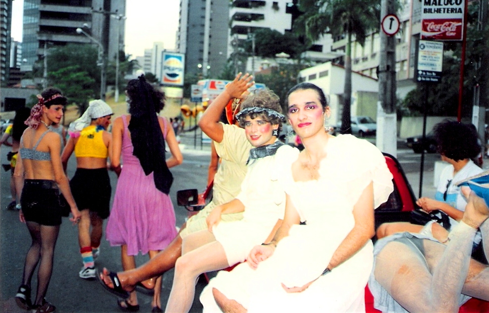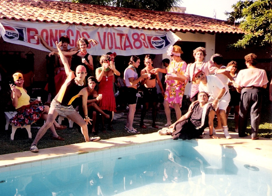Avisei os amigos e em 1988 participamos da festa das bonecas da Volta da Jurema, tudo empolgado querendo ser mulher por um dia. Euzinha botei uma sainha, blusinha de alça com enchimento, meia tarrafa, uma maquiagem assim bem básica e calcei… o conga. Bicha pobre, tadinha. Nem peruca tinha. Mas descolei uma bolsa escândalo pra levar a garrafa de Ypióca. Mulher moderna é assim, pinguça e pragmática.